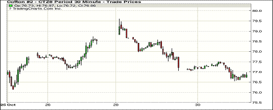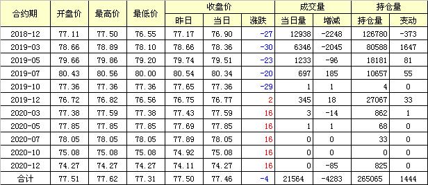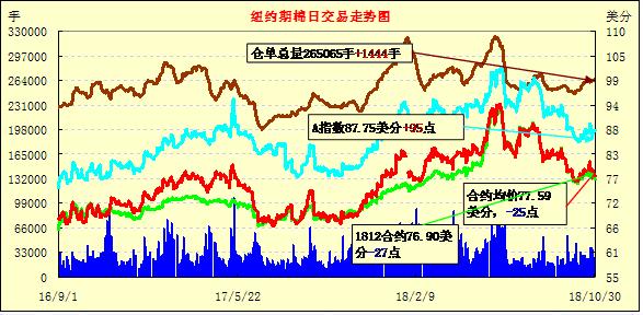 30日紐約期棉市場近跌遠漲。1812合約結算價76.90美分,跌27點;1903合約結算價78.36美分,跌30點;1905合約結算價79.51美分,跌23點。當日12月合約小幅低開,開盤后交易重心受支撐上行,至當日高點77.50美分處賣盤入場,市場承壓走低,低點處買盤發(fā)力,市場受支撐回彈,但因上漲動力不足,最終未能扭轉跌勢,以小幅下跌收盤。周二結算價76.90為10月11日以來最低。貿易戰(zhàn)陰云依舊揮之不去,有消息稱若中美兩國領導人在G-20的會晤未能緩解貿易戰(zhàn),美國或將在12月初公布對所有余下的中國進口商品加征關稅。此外,美國勞工部將于當?shù)貢r間本周周五公布最新的就業(yè)數(shù)據(jù),良好的就業(yè)數(shù)據(jù)代表了美國經(jīng)濟發(fā)展強勁,那么將有可能拉動紡織品內需。外圍美元指數(shù)上漲,小麥、大豆和玉米期貨下跌。周二美股三大股指集體收漲。