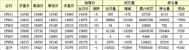 主力CF901合約當(dāng)日交易走勢圖