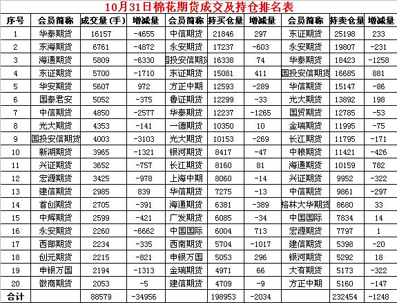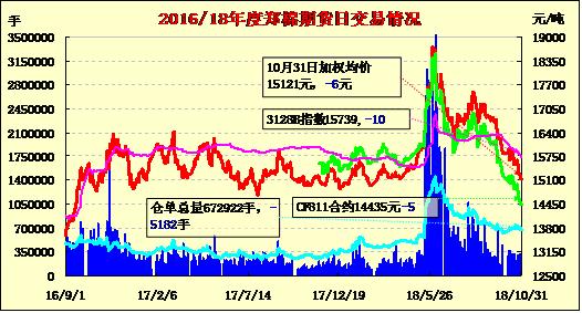 10月31日,隔夜鄭棉盤跌,今日早盤回升震蕩,日線形成陰線星。日內(nèi)成交量萎縮,持倉量近減遠(yuǎn)增。基本面情況:10月份,中國制造業(yè)采購經(jīng)理指數(shù)(PMI)為50.2%,比上月回落0.6個百分點,制造業(yè)總體繼續(xù)運行在擴(kuò)張區(qū)間,但擴(kuò)張速度放緩。從企業(yè)規(guī)模看,大型企業(yè)PMI為51.6%,比上月回落0.5個百分點,繼續(xù)保持?jǐn)U張態(tài)勢;中、小型企業(yè)PMI為47.7%和49.8%,分別比上月回落1.0和0.6個百分點,低于臨界點。