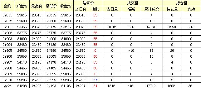 主力CY901合約當(dāng)日交易走勢