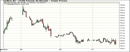 10月最后一個交易日紐約期棉市場近跌遠漲。1812合約結(jié)算價76.86美分,跌4點;1903合約結(jié)算價78.30美分,跌6點;1905合約結(jié)算價79.49美分,跌2點。其他合約上漲1-9點不等。當(dāng)日12月合約小幅低開,開盤后交易重心受支撐上行,高點處賣盤入場,市場承壓走低,后至收盤處維持震蕩態(tài)勢,最終未能扭轉(zhuǎn)跌勢,以微幅下跌收盤。主力合約連續(xù)三個交易日收跌,累計下跌167點。據(jù)悉,某大型多頭基金開始向3月移倉。此外,美元維持強勁勢頭,也對美棉現(xiàn)貨銷售進度產(chǎn)生不利影響。外圍美元指數(shù)上漲,大豆期貨上漲,小麥和玉米期貨下跌。周三美股維持前一日漲勢,三大股指齊收漲。