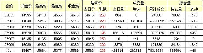 主力CF901合約當(dāng)日交易走勢圖