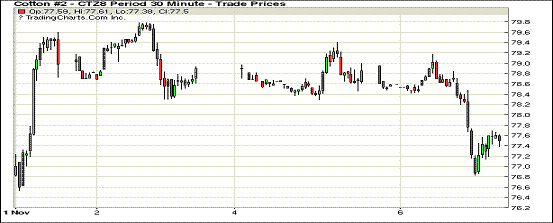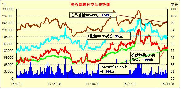 10月6日紐約期棉市場全面收跌。1812合約結算價77.43美分,跌144點;1903合約結算價79.27美分,跌107點;1905合約結算價80.64美分,跌99點。其他合約下跌42-88點不等。當日12月合約小幅高開,因缺乏方向指引,開盤后市場維持震蕩態(tài)勢,后賣盤入場,交易重心承壓走低,至收盤處跌幅加深,最終以大幅下跌收盤。由于市場目前面臨諸多不確定因素,包括結果即將出爐的美國中期選舉,以及將于本周公布的USDA月度供需平衡表等,使參與者普遍持觀望態(tài)度。另據(jù)悉,某大型多頭基金繼續(xù)12至3月移倉。外圍美元指數(shù)上漲,小麥期貨上漲,玉米和大豆期貨下跌。周二美股全線收漲。