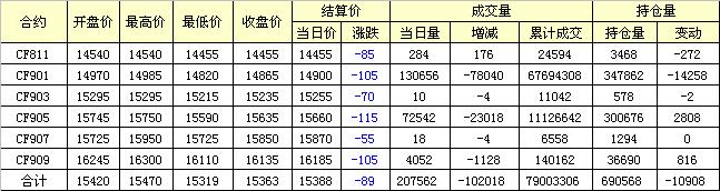 主力CF901合約當(dāng)日交易走勢圖