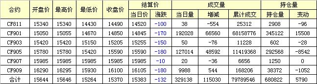 主力CF901合約當日交易走勢圖