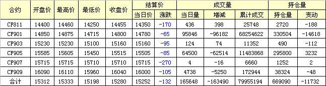 主力CF901合約當(dāng)日交易走勢(shì)圖