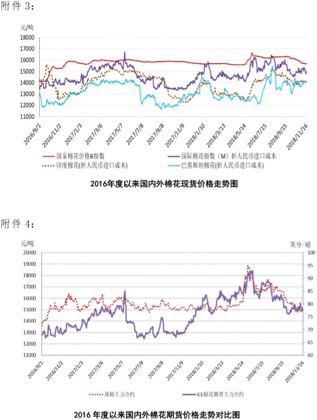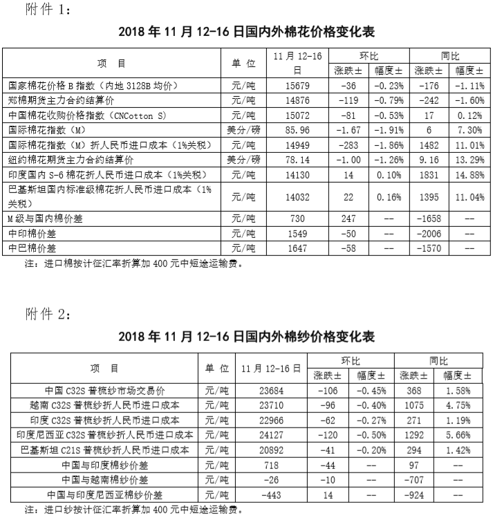 附件1:2018年11月12-16日國內(nèi)外棉花價(jià)格變化表