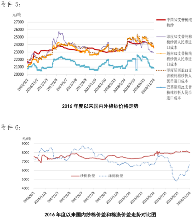 附件5:2016年度以來國內(nèi)外棉紗價(jià)格走勢圖