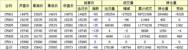主力CF901合約當(dāng)日交易走勢圖