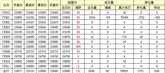 主力CY901合約當(dāng)日交易走勢