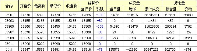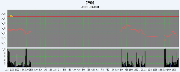 11月20日,隔夜鄭棉盤整,今日早盤遠月在空頭賣盤壓制下走低,此后低位盤整,日線形成小陰線。日內成交量萎縮,持倉量近減遠增。基本面情況:上周初,低溫降雨天氣給德克薩斯的采摘帶來阻礙,據當?shù)胤治觯?西德州約有10%-30%的棉桃因降雨脫落,棉農急于采摘,并且對新花的顏色級和產量十分擔憂。上周五當?shù)靥鞖馇缋蕼嘏瑢w維漂白有利,土壤濕度也將降低,預計周末采摘將再次展開。此外, 德州南部采摘即將恢復,但短期內有40%-60%的概率發(fā)生雷暴,從而限制田間作業(yè)。