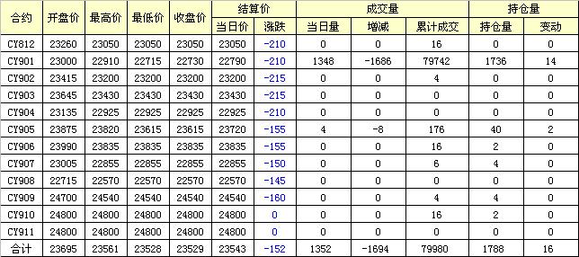 主力CY901合約當(dāng)日交易走勢