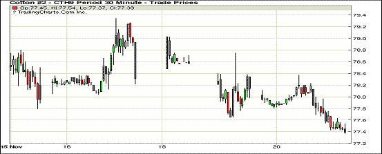 11月20日受美元走強(qiáng)、美股及外圍市場普遍收跌以及轉(zhuǎn)倉壓力等因素影響,紐約期棉市場再次全面收跌。1812合約結(jié)算價(jià)75.27美分,跌61點(diǎn);1903合約結(jié)算價(jià)77.43美分,跌62點(diǎn);1905合約結(jié)算價(jià)78.67美分,跌65點(diǎn)。當(dāng)日3月合約平穩(wěn)開盤,上半場到達(dá)當(dāng)日高點(diǎn)78.37美分/磅后受賣盤打壓回落,跌勢一直延續(xù)到盤終,再次以陰跌收盤。12月合約將于11月26日(下周一)進(jìn)入第一交割通知日,轉(zhuǎn)倉交易活躍;期棉市場本周四休市一天,預(yù)計(jì)短期內(nèi)價(jià)格仍將維持弱勢。外圍美元指數(shù)走強(qiáng),玉米、大豆和小麥期貨全線走低。美股遭血洗,道指大跌550點(diǎn),回吐年內(nèi)全部漲幅,標(biāo)普跌1.82%,納指跌1.70%。