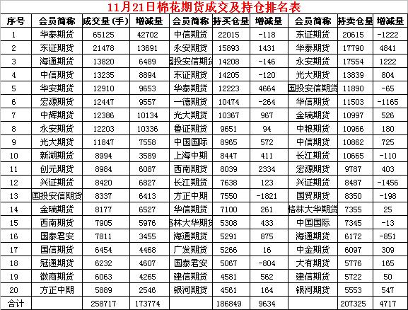 11月21日,隔夜鄭棉下跌,今日早盤放量滑后在逢低買盤推動下回升,尾盤受空頭回補推動收強,日線形成長下影線的陰線星。日內(nèi)成交量放大,持倉量增加?;久媲闆r:今年9月印度棉花出口16384噸,主要至孟加拉(10992噸),越南(2283噸)和印尼(1488噸)。今年8-9月印度累計出口棉花49038噸,較去年同期增加75%。同時,當月印度棉花進口22816噸,其中主要是美棉和澳棉,今年8-9月印度累計進口棉花48868噸,去年同期為14.53萬噸。