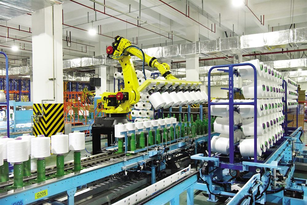 恒力集團(tuán)副總經(jīng)理陳秋榮透露,智能制造是恒力轉(zhuǎn)型升級(jí)的一大亮點(diǎn)。近些年,通過“機(jī)器換人”“單臺(tái)換成套”“自動(dòng)換智能”“智能換數(shù)字”等方式,恒力把生產(chǎn)線打造成“機(jī)器人的世界”,為產(chǎn)業(yè)升級(jí)換上“智能引擎”,為紡織同行提供一部極具規(guī)模和影響力的全智能大片。