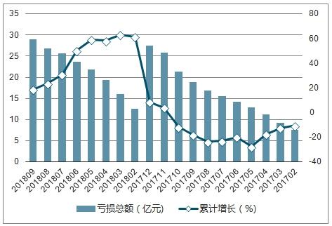 2017-2018年中國皮革、毛皮、羽毛及其制品和制鞋業(yè)虧損企業(yè)虧損總額走勢