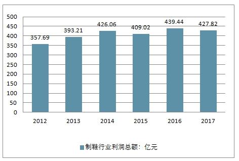 2012-2017年我國制鞋行業(yè)利潤總額變化(單位:億元)