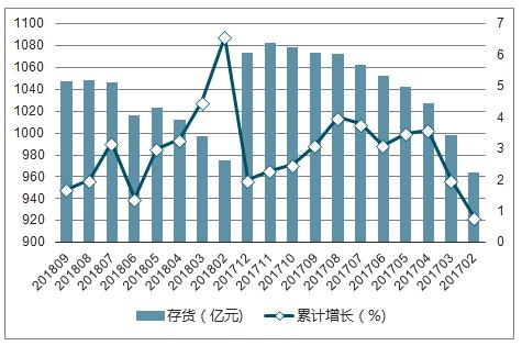 2017-2018年中國皮革、毛皮、羽毛及其制品和制鞋業(yè)存貨情況走勢