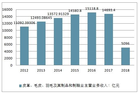 2018年1-5月,全國皮革、毛皮、羽毛及其制品和制鞋業(yè)主營業(yè)務收入5096億元,同比增長5.4%;