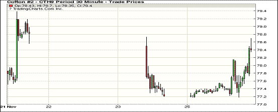 26日紐約期棉市場(chǎng)全面收漲。1812合約結(jié)算價(jià)76.75美分,漲183點(diǎn);1903合約結(jié)算價(jià)77.93美分,漲71點(diǎn);1905合約結(jié)算價(jià)79.12美分,漲63點(diǎn)。其他合約上漲17-60點(diǎn)不等。當(dāng)日3月合約小幅低開(kāi),整個(gè)上半場(chǎng)交易波瀾不驚,低點(diǎn)處買(mǎi)盤(pán)發(fā)力,市場(chǎng)受支撐走高,后受獲利了結(jié)盤(pán)壓力交易重心承壓下行,至當(dāng)日低點(diǎn)77.18美分處買(mǎi)盤(pán)發(fā)力,市場(chǎng)止跌反彈,后雖經(jīng)歷幾次震蕩,最終扭轉(zhuǎn)前一日跌勢(shì),以漲勢(shì)收盤(pán)。受美國(guó)股市反彈和降雨天氣影響,美國(guó)多棉區(qū)棉花采摘進(jìn)度出現(xiàn)延遲,對(duì)未采摘部分產(chǎn)量和質(zhì)量的擔(dān)憂支撐期棉價(jià)格走高。此外,G20峰會(huì)即將召開(kāi),市場(chǎng)普遍期待中美貿(mào)易緊張局勢(shì)將通過(guò)會(huì)談?dòng)兴徍?,提振棉花市?chǎng)。外圍美元指數(shù)上漲,小麥期貨上漲,大豆和玉米期貨下跌。美股收盤(pán)齊走高,三大股指普漲。