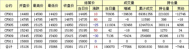 主力CF901合約當日交易走勢圖