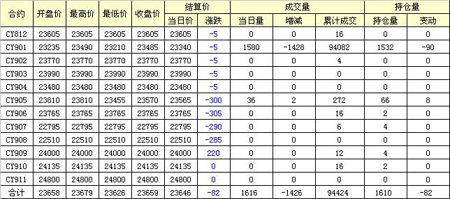 主力CY901合約當日交易走勢