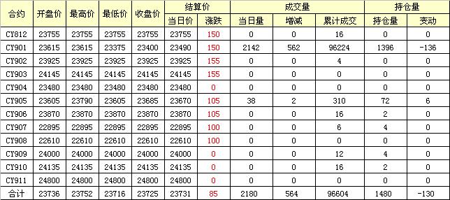 主力CY901合約當(dāng)日交易走勢