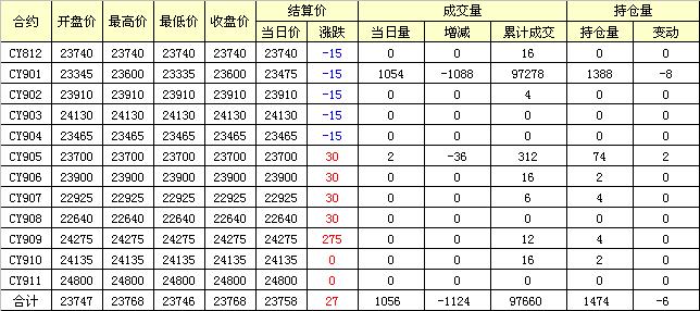 主力CY901合約當(dāng)日交易走勢(shì)