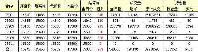 主力CF901合約當(dāng)日交易走勢圖