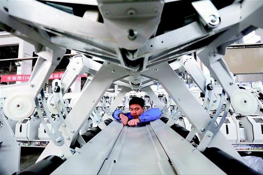 11月28日宜昌經(jīng)緯紡機(jī)有限公司工人正在趕制出口美國(guó)的捻線機(jī)。今年前10個(gè)月公司捻線機(jī)械設(shè)備銷售收入超過3億元,產(chǎn)品出口美國(guó)、日本、土耳其、印度、部分歐洲國(guó)家。公司自主研發(fā)生產(chǎn)的地毯捻線機(jī)、輪胎簾子線直捻機(jī)在科技含量和工藝上躋身世界先進(jìn)水平。