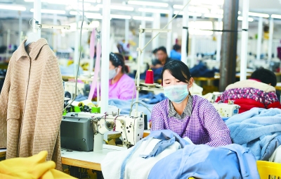 近日,入駐滄州明珠國(guó)際服飾產(chǎn)業(yè)小鎮(zhèn)的世紀(jì)奧杰服飾有限公司里,工人在加工服裝。
