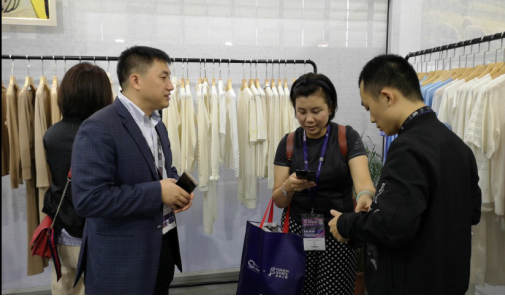 中國女裝領(lǐng)軍企業(yè)歌力思時(shí)尚集團(tuán)供應(yīng)鏈負(fù)責(zé)人到訪針織力量展位,并驚喜地發(fā)現(xiàn)數(shù)家具有合作潛力的毛衫企業(yè)?。ǜ较聢D)