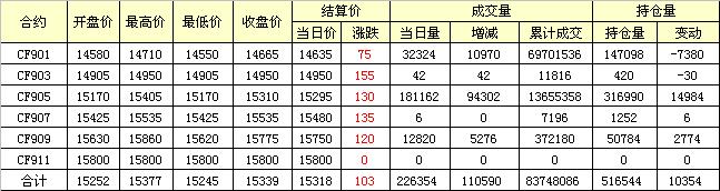 主力CF901合約當(dāng)日交易走勢(shì)圖