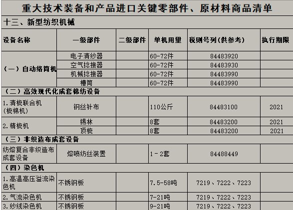 2.重大技術(shù)裝備和產(chǎn)品進(jìn)口關(guān)鍵零部件、原材料商品目錄(紡織機(jī)械2018年修訂)