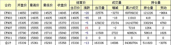 主力CF901合約當(dāng)日交易走勢圖
