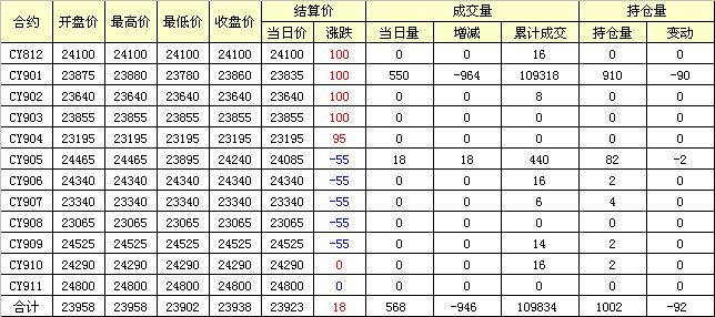 主力CY901合約當(dāng)日交易走勢(shì)