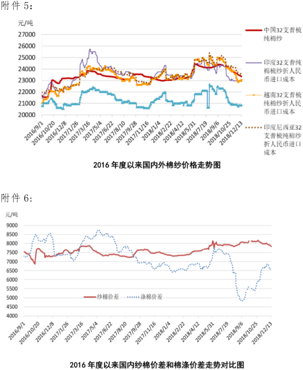 附件5:2016年度以來國(guó)內(nèi)外棉紗價(jià)格走勢(shì)圖