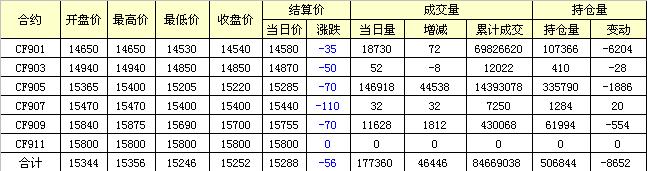 主力CF901合約當(dāng)日交易走勢(shì)圖