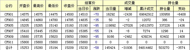 主力CF901合約當(dāng)日交易走勢(shì)圖