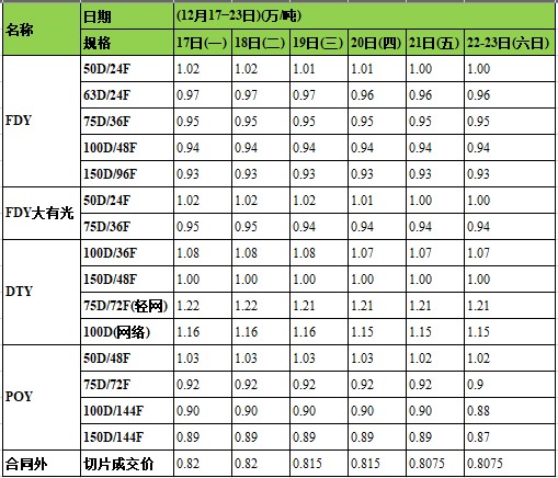 從目前市況分析:滌綸長(zhǎng)絲前道原料PTA、MEG行情有所回落,下游抵觸情緒產(chǎn)生觀望氣氛日濃,雙休日各地化纖廠家滌綸長(zhǎng)絲開單產(chǎn)銷率偏低,但下游織造自身處在轉(zhuǎn)淡之中,織造、加彈開機(jī)率均一般,且聚酯廠家滌綸長(zhǎng)絲整體庫(kù)存逐漸上升,而出自于走貨考慮。多數(shù)人士認(rèn)為,下周滌綸長(zhǎng)絲行情下行在所難免。