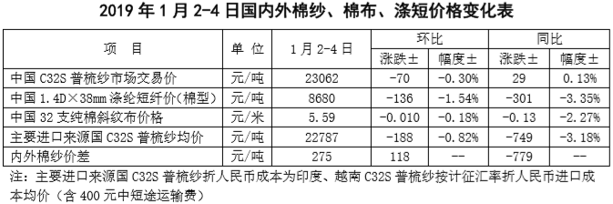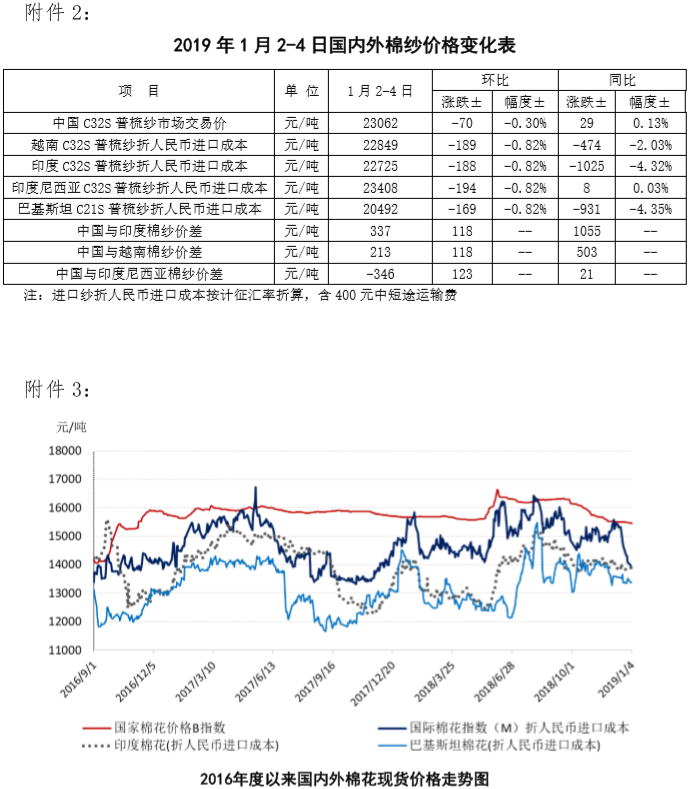 附件2:2019年1月2-4日國內(nèi)外棉紗價格變化表