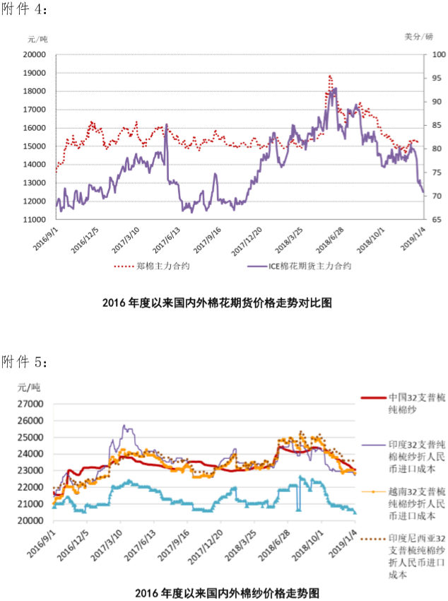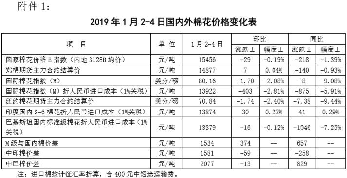 附件1:2019年1月2-4日國內(nèi)外棉花價格變化表