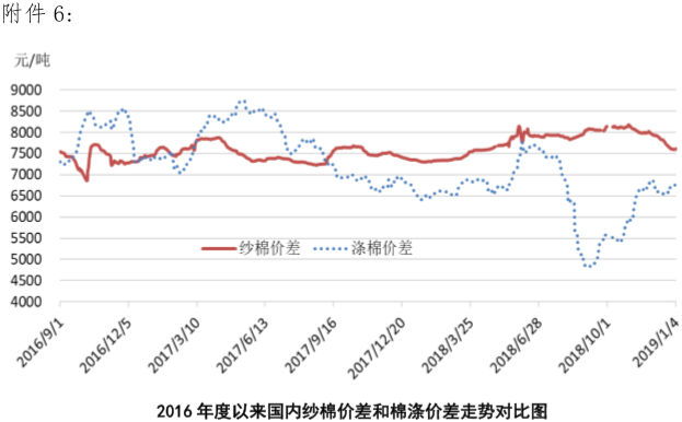 附件6:2016年度以來國內(nèi)紗棉價差和滌棉價差走勢對比圖