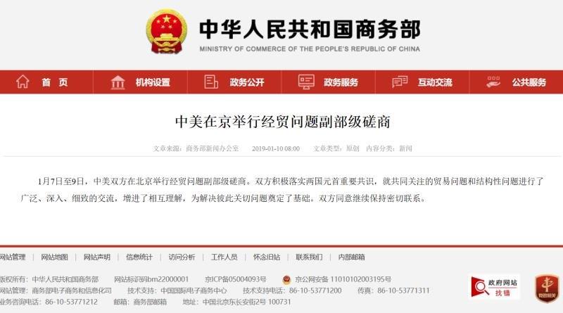 1月7-9日,中美雙方在北京舉行經(jīng)貿(mào)問題副部級磋商。雙方積極落實兩國元首重要共識,就共同關(guān)注的貿(mào)易問題和結(jié)構(gòu)性問題進行廣泛、深入、細致的交流,增進相互理解,為解決彼此關(guān)切問題奠定基礎(chǔ)。雙方同意繼續(xù)保持密切聯(lián)系。