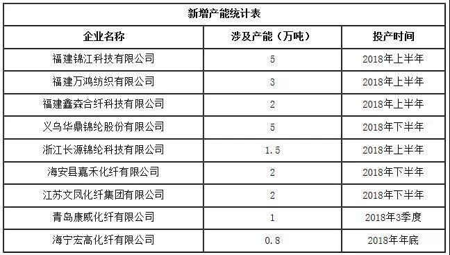 2018年錦綸行業(yè)新增產(chǎn)能