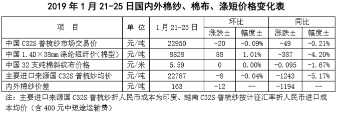 附件2:2019年1月21-25日國內(nèi)外棉紗價格變化表