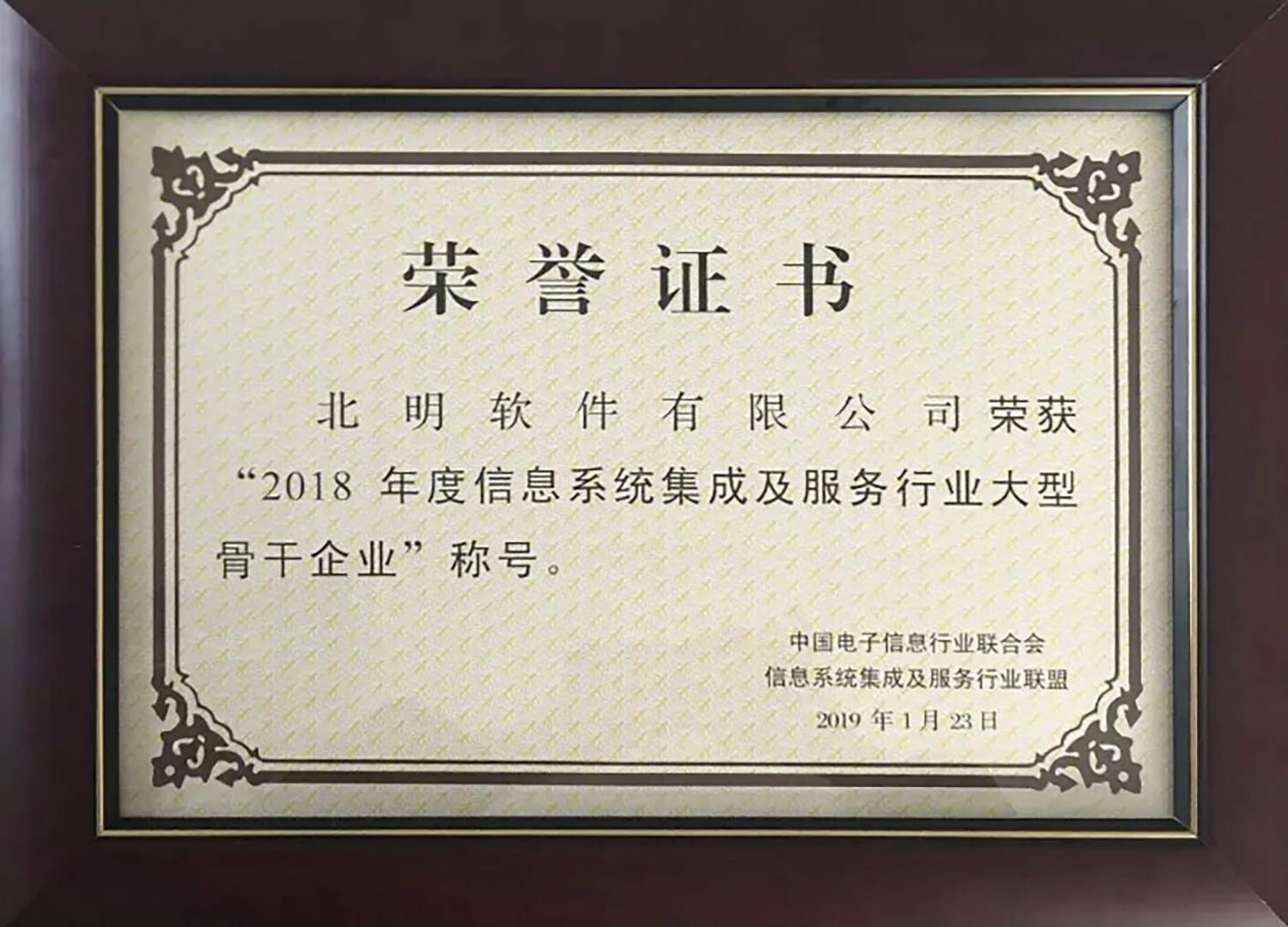2018年度信息系統(tǒng)集成及服務(wù)行業(yè)大型骨干企業(yè)證