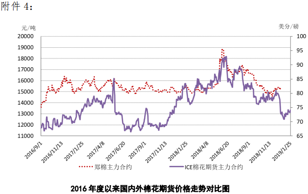附件4:2016年度以來國內(nèi)外棉花期貨價(jià)格走勢圖