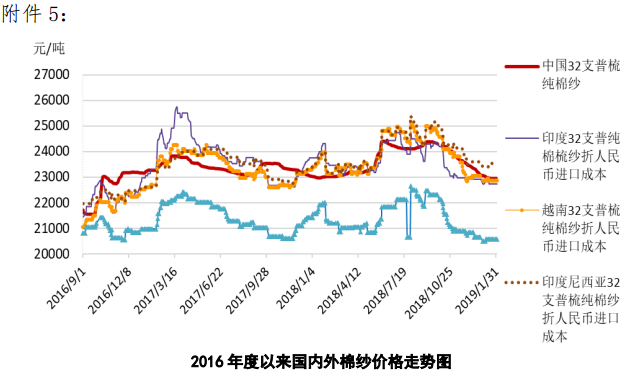 附件5:2016年度以來國內(nèi)外棉紗價(jià)格走勢圖