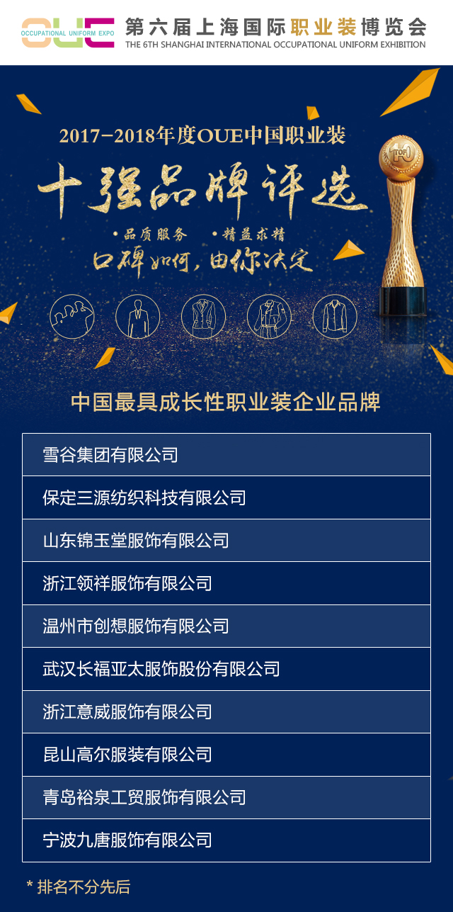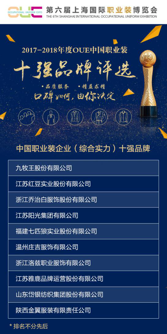 一切盡在OUE中國十強(qiáng)職業(yè)服企業(yè)評選!